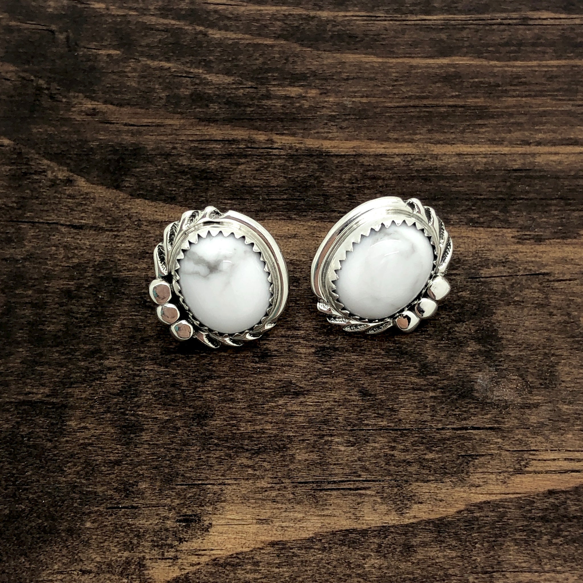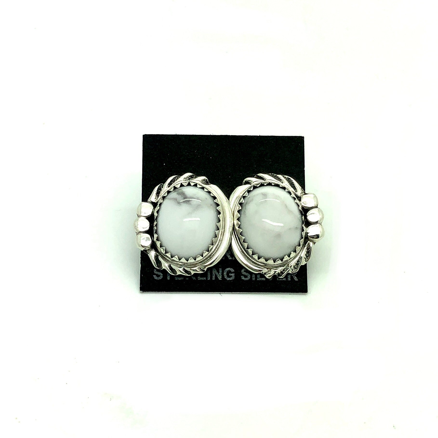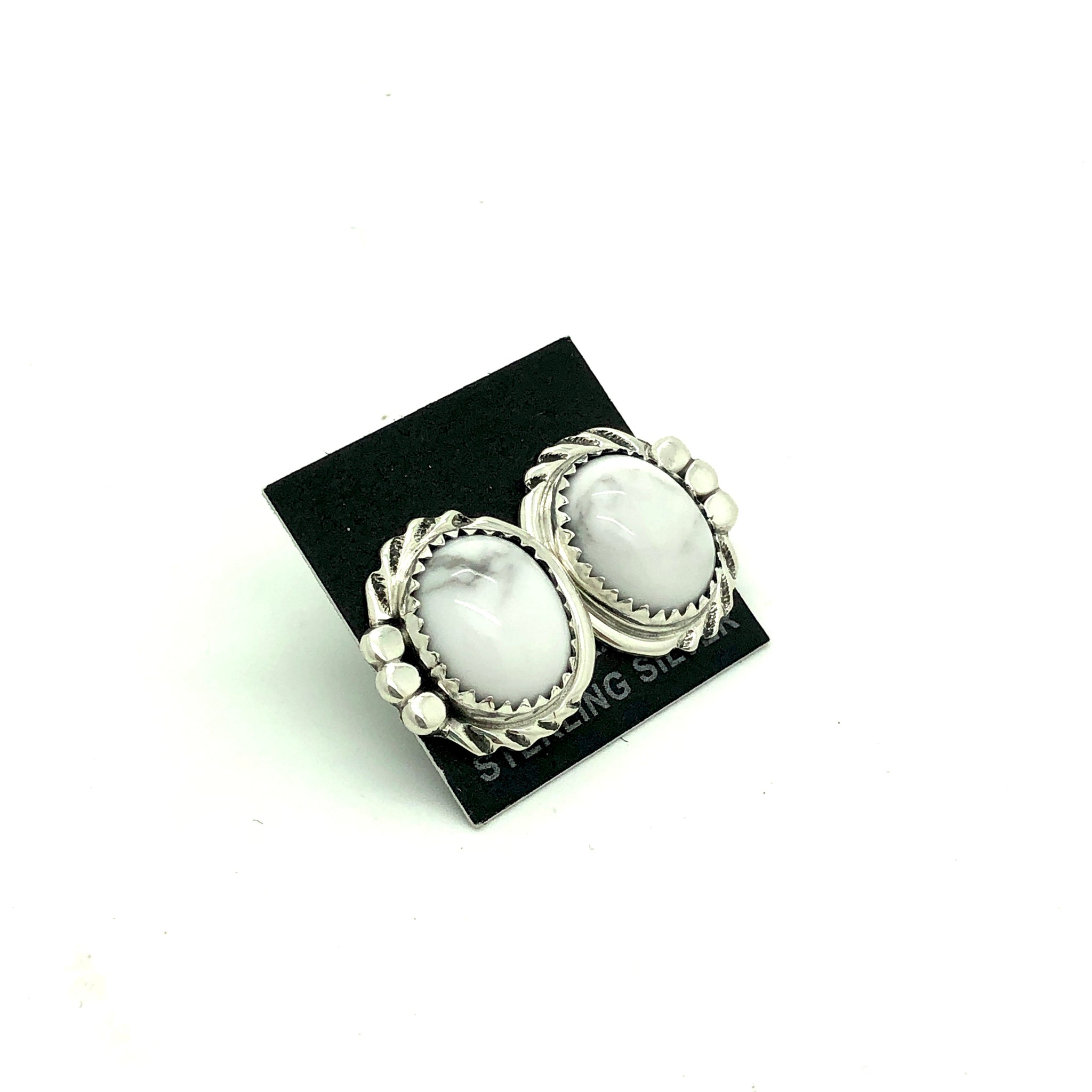 • Stud earrings feature howlite with black matrix set in sterling silver