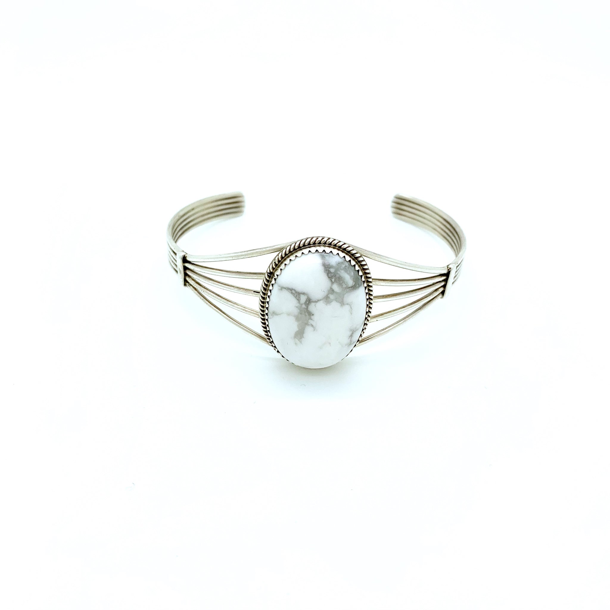 •This beautiful bracelet features a large white howlite stone set in sterling silver